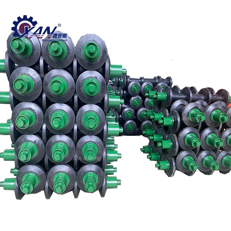 Te rolki napinające odgrywają kluczową rolę w ułatwianiu płynnego powrotu taśmy przenośnika, zapewniając efektywny transport materiału. Gumowy materiał zastosowany w tarczach zapewnia dobrą przyczepność i zmniejsza ryzyko poślizgu paska.